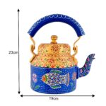 Elevate your tea brewing experience with our exquisite hand-painted aluminium tea kettle. Crafted with care and attention to detail, this kettle holds 750 ml of your favorite brew, perfect for intimate gatherings or quiet moments of indulgence. The hand-painted design adds a touch of artistic flair to your kitchen, making it a beautiful centerpiece for any tea lover’s collection. With its sturdy construction and elegant aesthetic, this tea kettle seamlessly combines style and functionality. Treat yourself or surprise a loved one with this unique piece that promises delightful tea moments every time.